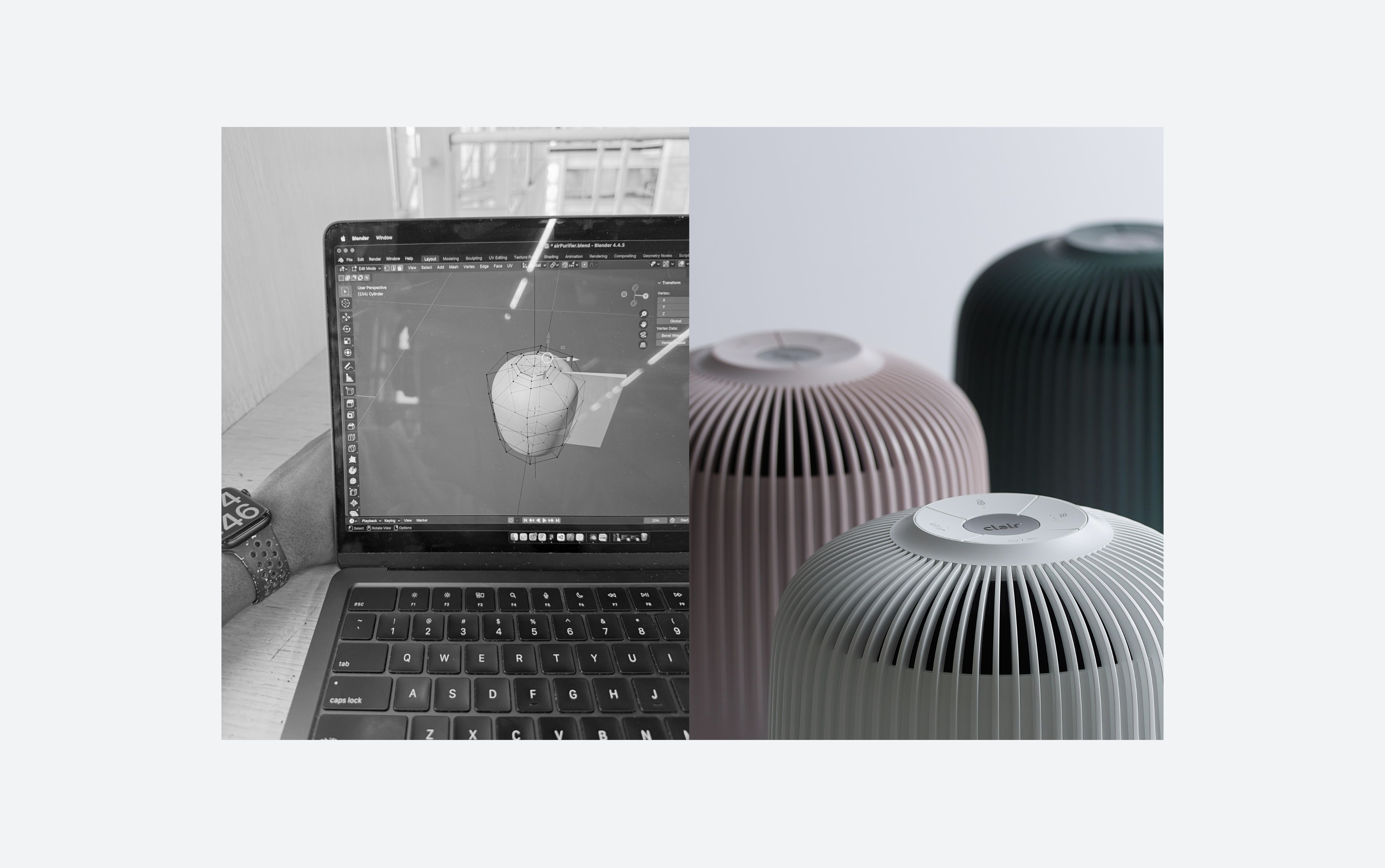 I handle full physical product design process — from initial ideas, sketching, 3D modelling in Blender, to rendering final visuals. The left side showcases the behind-the-scenes process, while the right side illustrates the finished look after rendering.