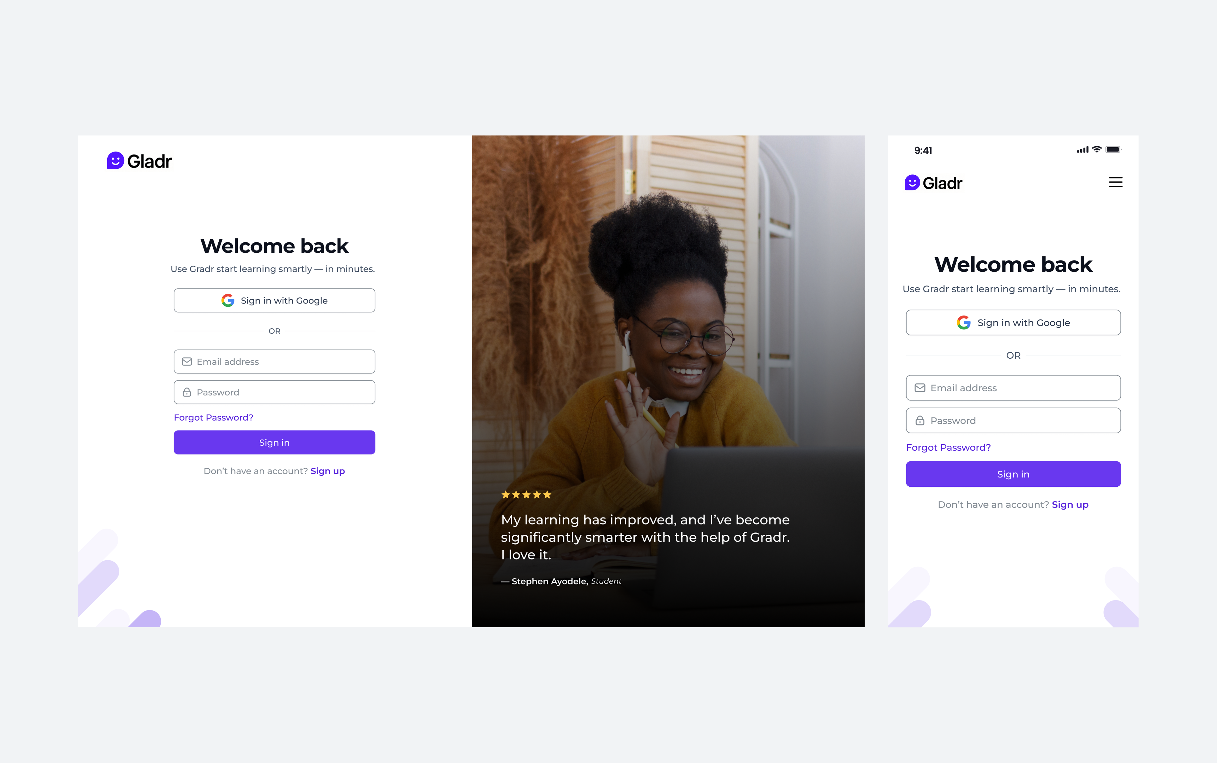 Gladr is an AI-powered study app that identifies users’ weak points and provides personalized learning guidance. I enhanced the user experience and redesigned the interface to make the app more intuitive, visually polished, and user-friendly.